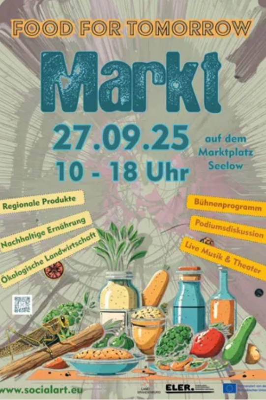 Vor unserer Tür findet an dem Tag auch der Food for Tomorrow Markt statt. Mit tollen Ständen von regionalen Landwirten und Produzenten, Bühnenprogramm und Musik.