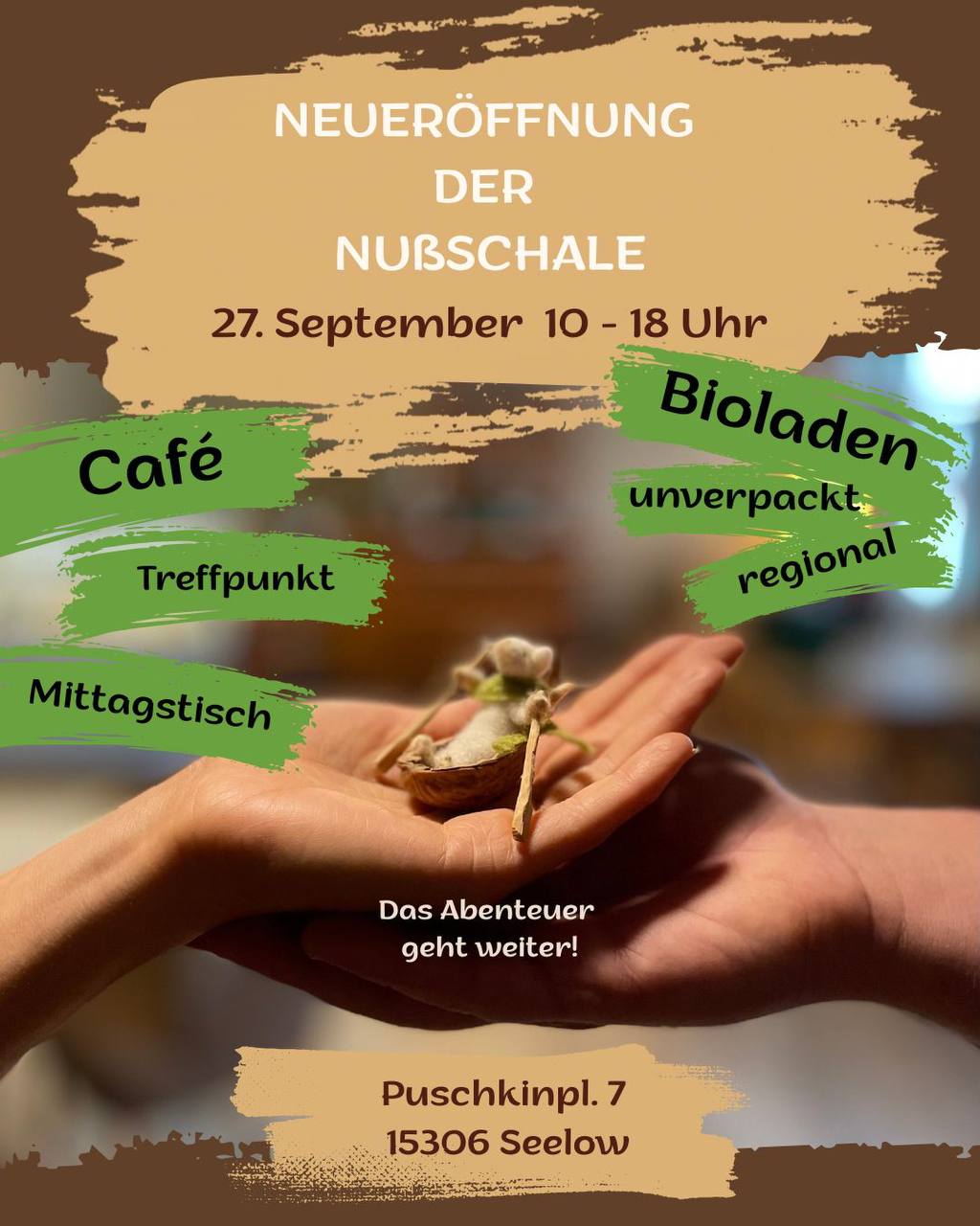 Juhuuh! Unsere Türen öffnen sich wieder der Welt! Nach einer Renovierungsphase feiern wir die Neueröffnung der Nußschale am Samstag, 27. September von 10 – 18 Uhr. Komm gerne vorbei, schau dich um, genieße ein vegetarisches Gericht und stöbere im Bioladen.